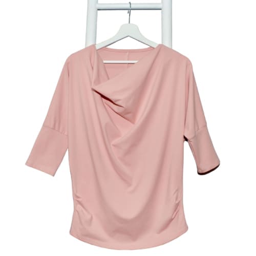 Gre za minimalističen, enobarven kos, ki izstopa ravno zaradi svojega dizajna. Majčka je moj lasten dizajn in kroj zasnovan tako, da se lepo in ohlapno prilagaja tvojemu telesu in načinu nošenja. Spredaj pri izrezu je rahlo nagubana in čez prsni del zelo široka, kar ti omogoča, da jo oblikuješ po svoje – lahko jo nosiš klasično, jo potegneš rahlo na stran ali pa spustiš eno ramo, da ustvariš še bolj sproščen, asimetričen, malce fensi videz.