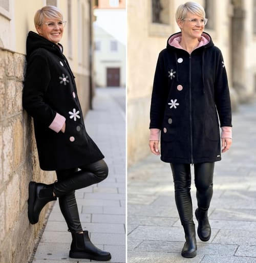 Večen, športno eleganten flis plašček je idealen za prehodne dni, ko želiš obleči nekaj prijetno toplega, zelo mehkega in športno elegantnega. Zate sem ga kreirala za vsakodnevno nošenje in odlično se bo prilegal tvojemu športnemu, kot tudi malce bolj elegantnemu slogu.