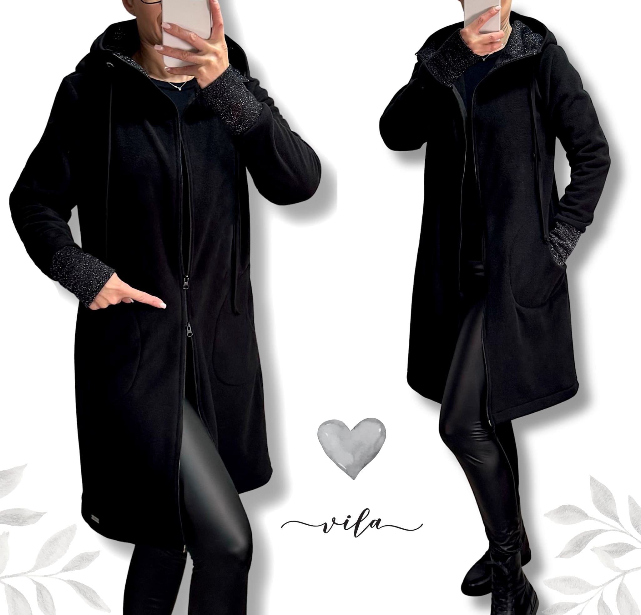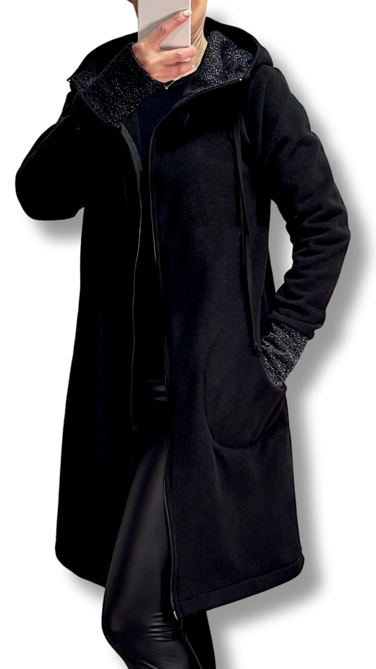 GlemStajl FLIS Hud.i PLAŠČEK – basic ČRN