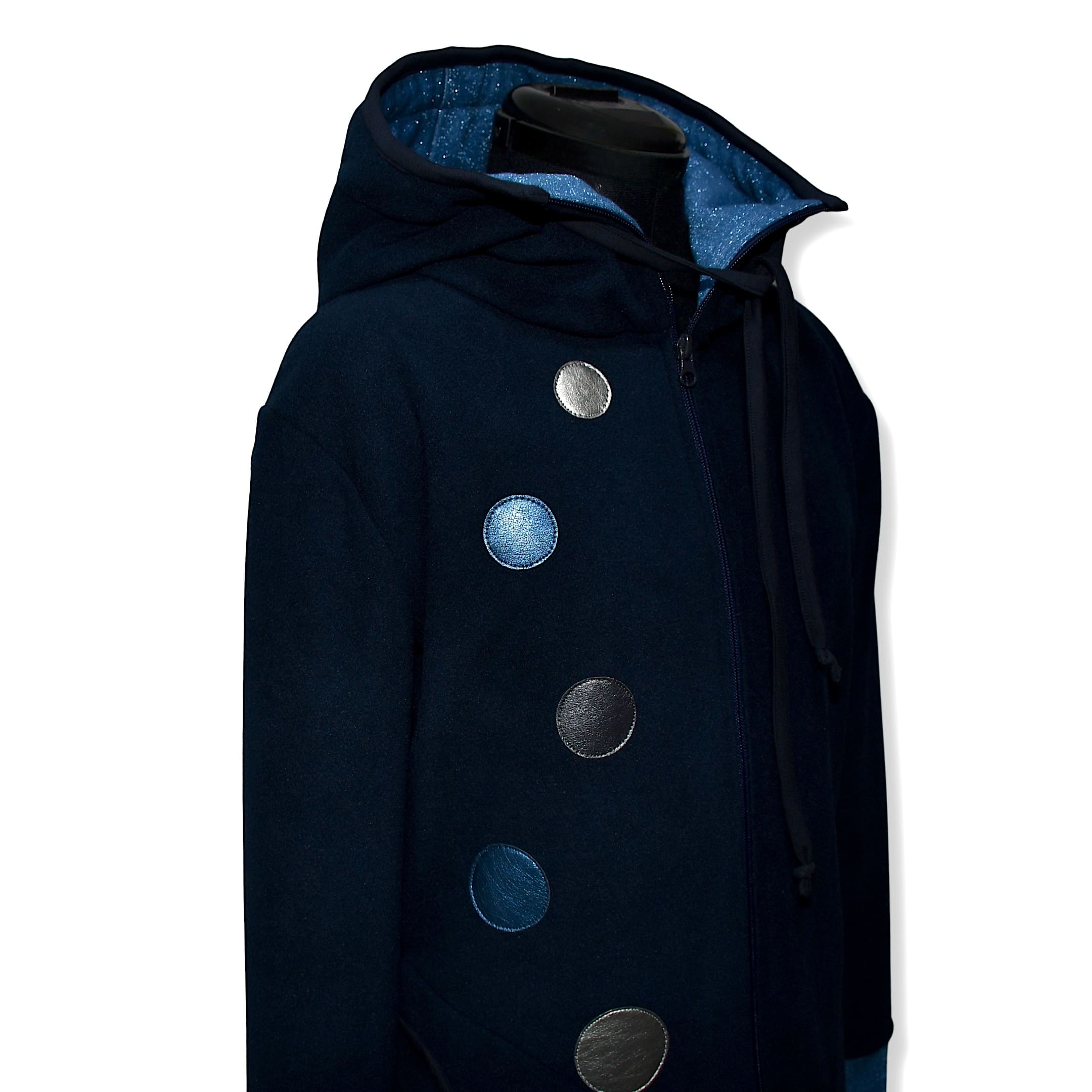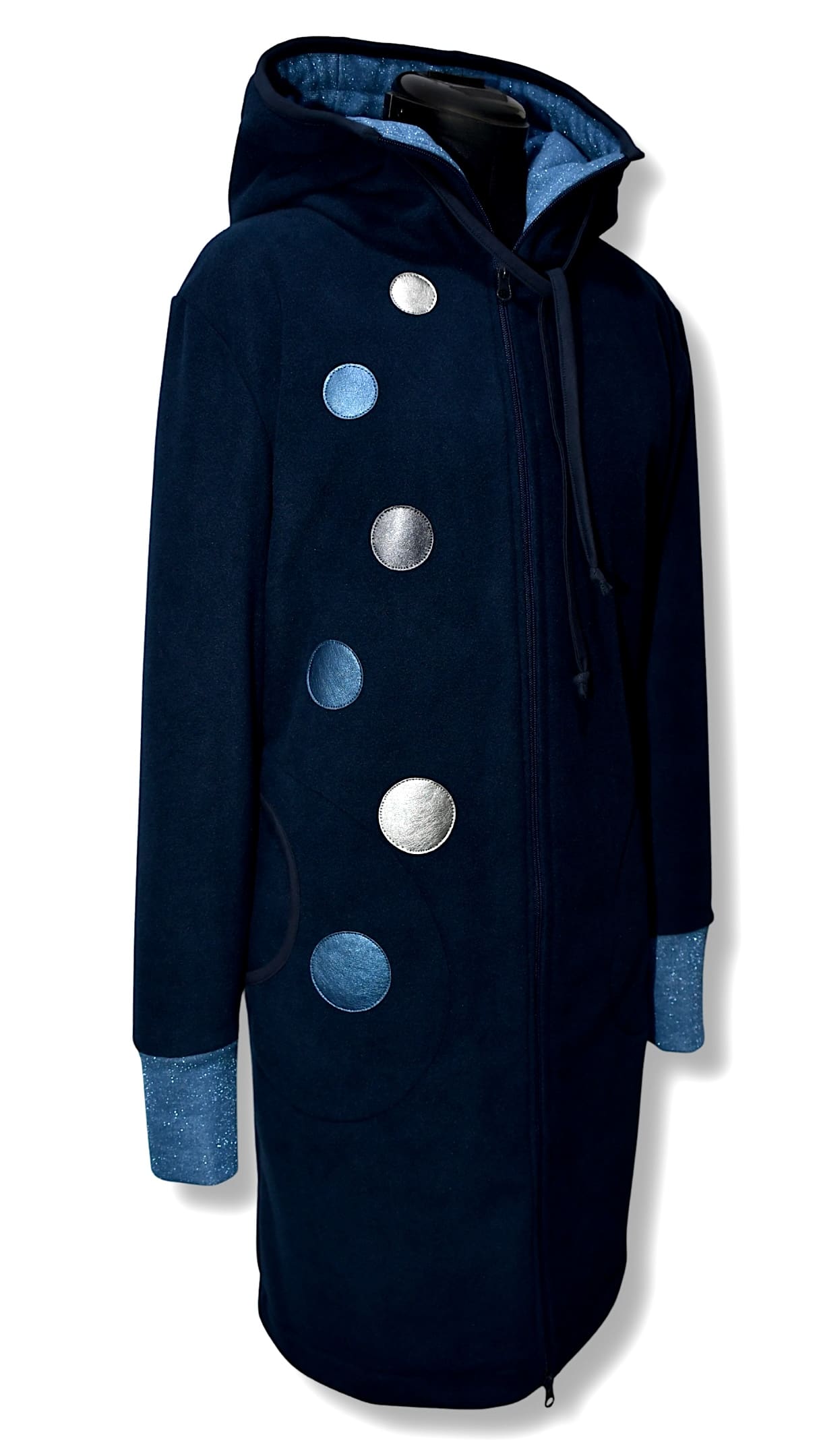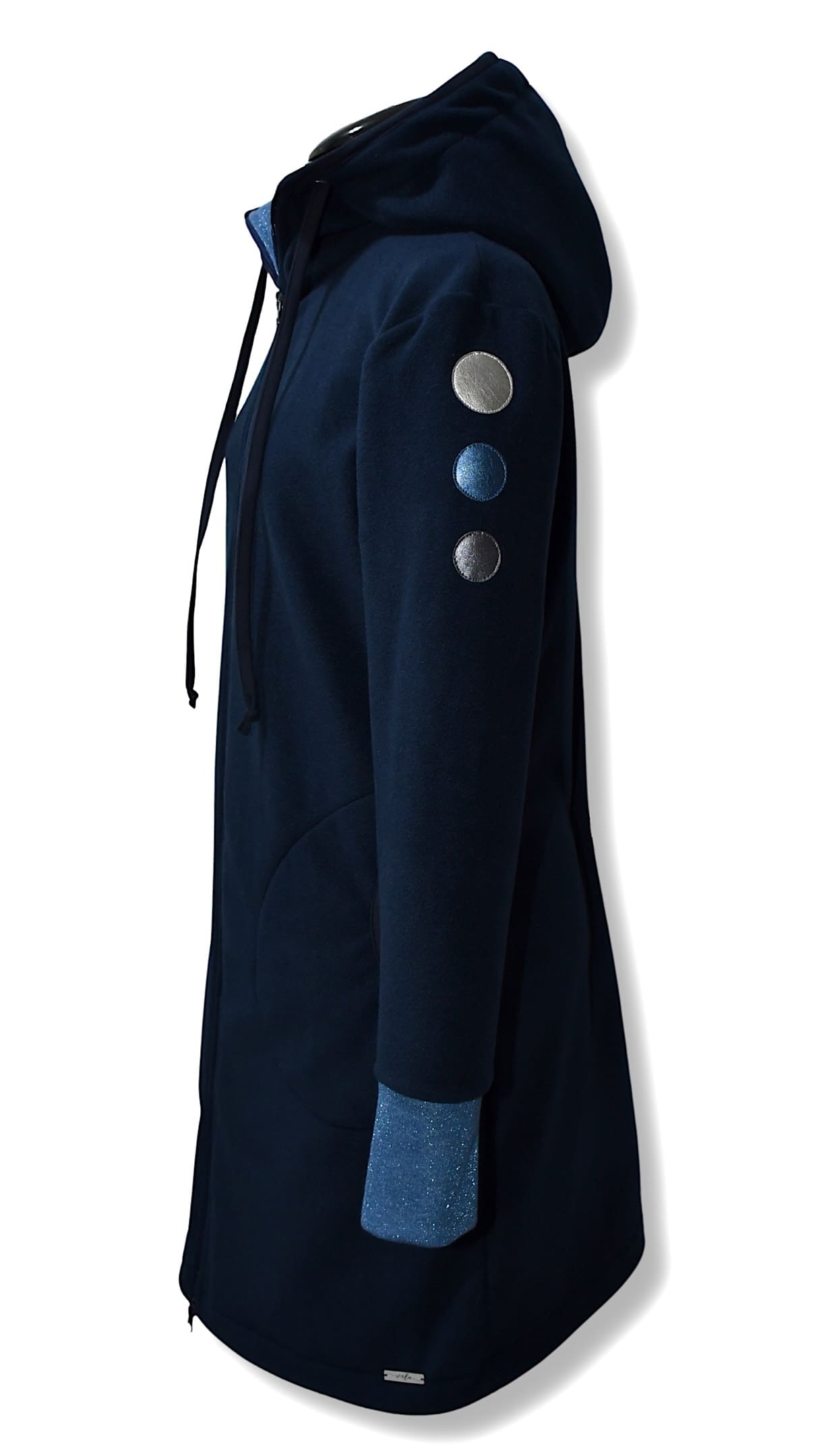Možna je DOLŽINA po IZBIRI. Na sliki je predstavljena dolž. 90 cm, lahko je pa tudi 75 / 80 / 85 cm, ter kot krajša jakn’ca 65 ali 70 cm cm dolžine.