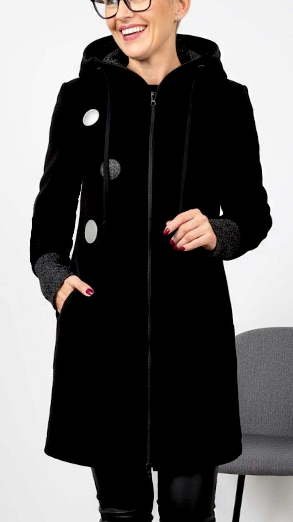 Možna je DOLŽINA po IZBIRI. Na sliki je predstavljena dolž. 90 cm, lahko je pa tudi 75 / 80 / 85 cm, ter kot krajša jakn’ca 65 ali 70 cm cm dolžine.