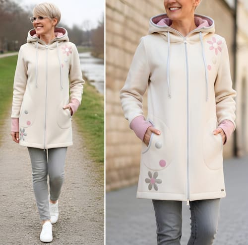 GlemStajl FLIS Hud.i PLAŠČEK ❁ MARJETKE / smetana – KRAJŠI